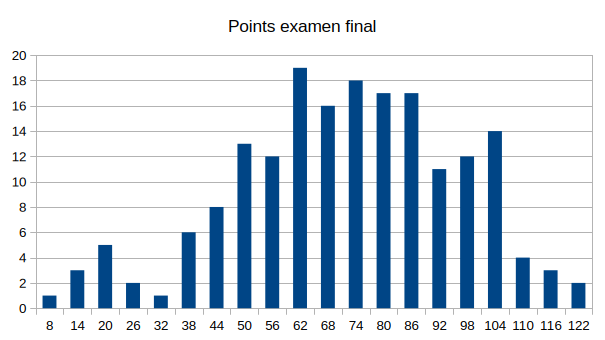 des points obtenus à l'examen de décembre (« Points ») et des notes